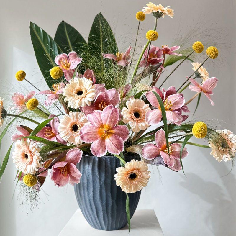 CERAMIC POT FRESH FLOWERS IF ANY TYPE IS NOT AVAILABLE, WE MIGHT CHANGE APROX : H : 79cm - W: 58cm